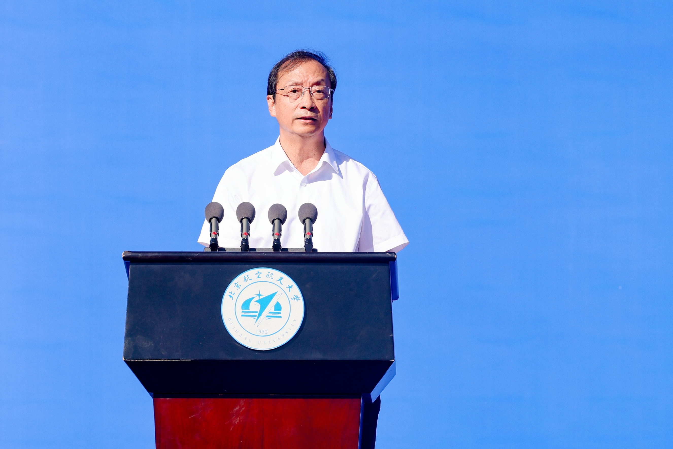 王云鹏代表北航全体师生对13708名新北航人表示热烈的欢迎和衷心的祝贺。他深情回顾了北航73年来始终与国同行、为空天事业奋斗的光荣历程,深入阐释了一代代北航人以智慧和汗水践行“空天报国”的使命担当。王云鹏指出,就在刚刚结束的九三阅兵上,众多“大国重器”背后都彰显着北航力量,这些成绩,正是北航人以智慧和汗水,为祖国空天事业书写的精彩华章。“学校的目标始终如一,就是要把优秀的你们培养成为能够开创未来、扛起国家重任的一流人才!”