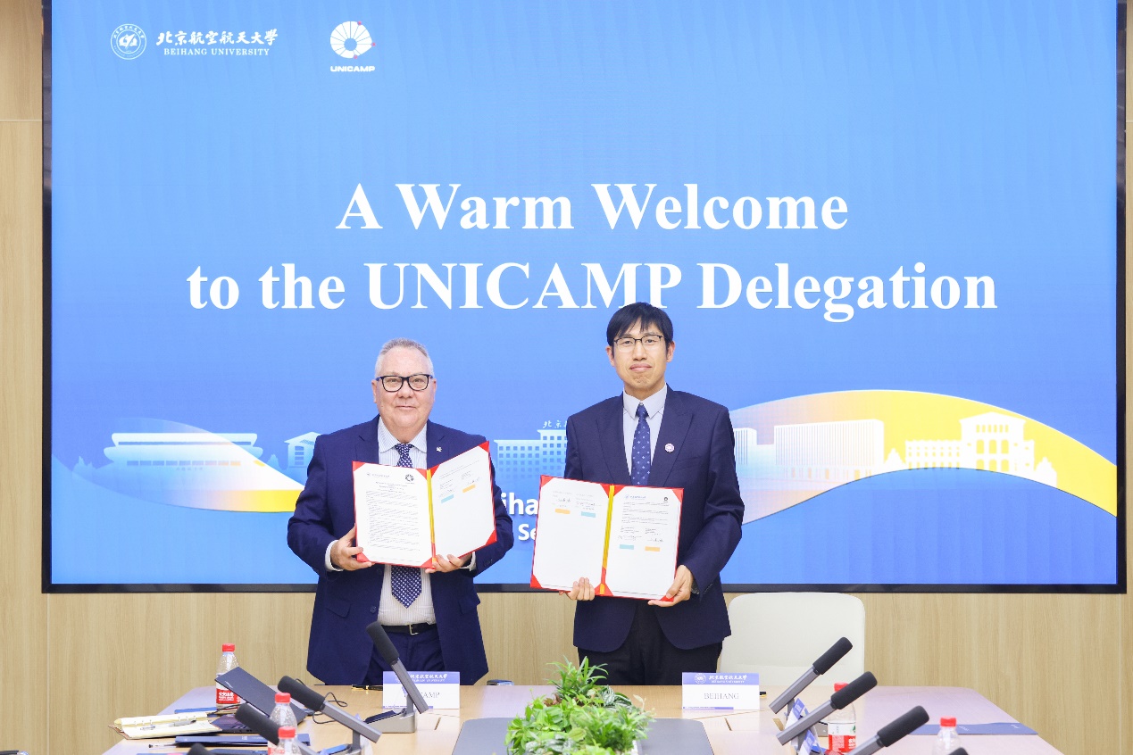会谈结束后,赵巍胜与蒙塔涅尔代表北航与坎皮纳斯州立大学签署校级学生交换协议。访问期间,蒙塔涅尔一行还参观了我校智能微纳公共创新中心。