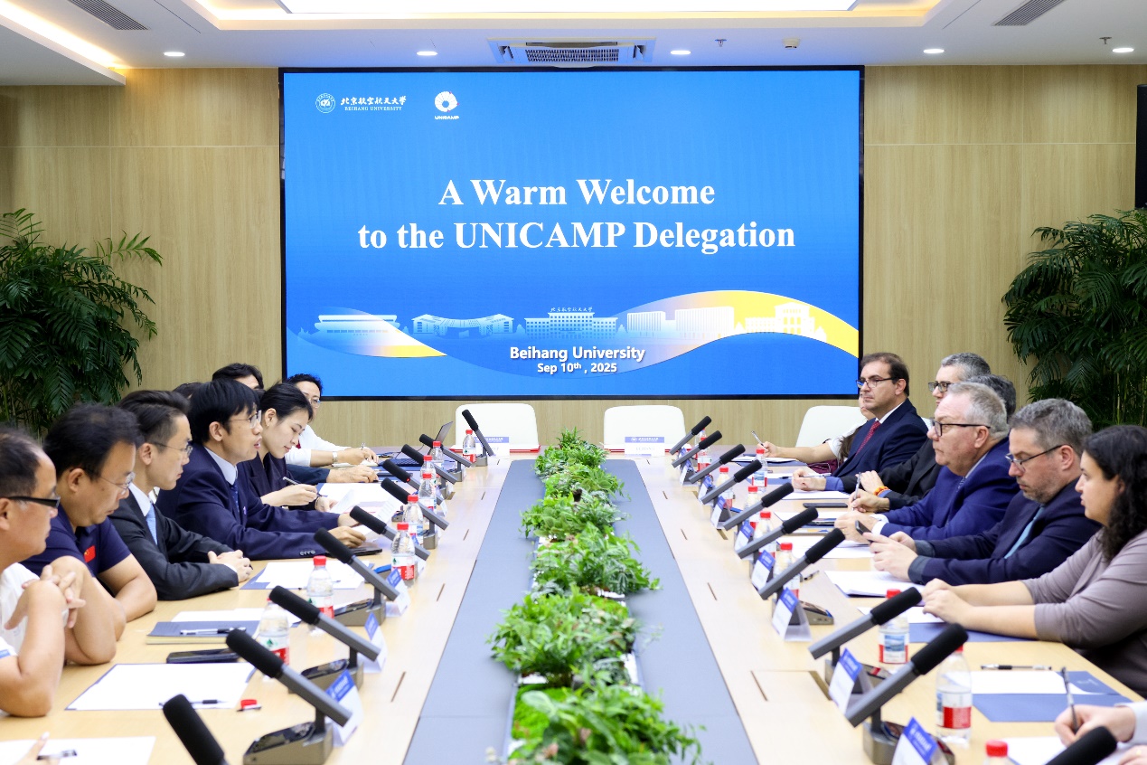 蒙塔涅尔对北航的热情接待表示感谢。他表示,坎皮纳斯州立大学是对华合作最多的巴西高校之一,学校高度重视跟中国高校、企业的合作,今年刚成立了中国研究院。北航“包容、创新、协同”的国际化办学理念与坎皮纳斯州立大学发展战略高度契合,未来两校将在科学研究、学生联合培养、体育文化交流等方面开展更深入合作。