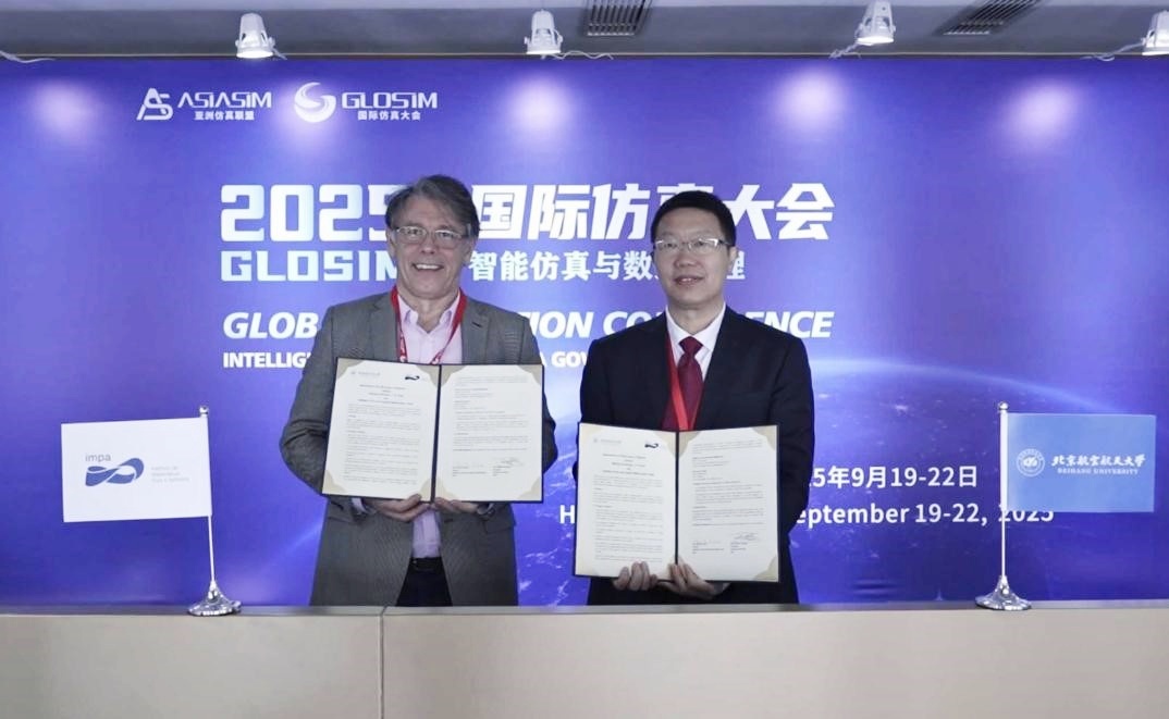 协议由校长王云鹏签署,副校长吕卫锋代表北航,在杭州校园国际仿真大会上与IMPA所长Marcelo Viana完成递签仪式。巴西科学院院士、ICM一小时报告人、IMPA教授Carlos Gustavo Moreira,联合国工业发展司原司长、北航数学科学学院校友龚维希,浙江省科协副主席孙伟伟,杭州市科协主席孙雍容,北航国新院、数学科学学院负责人等担任见签嘉宾,30多个国家和地区科技组织代表、近百家高等院校、1000多位与会嘉宾共同见证这一深化国际合作的重要时刻。