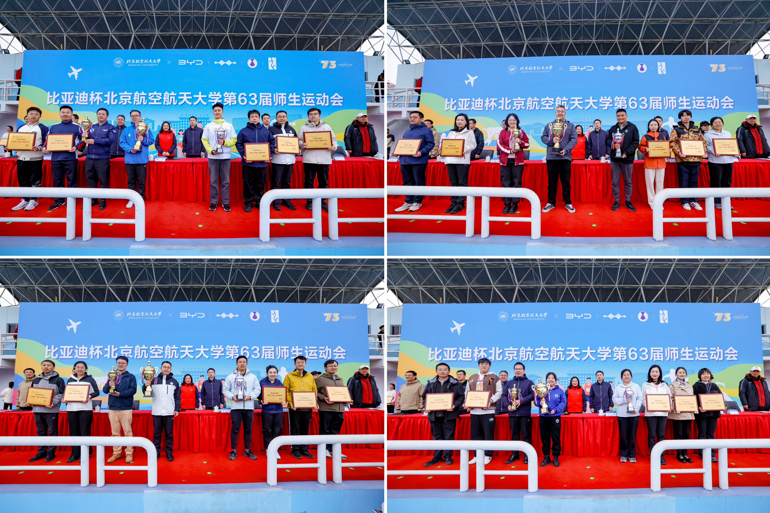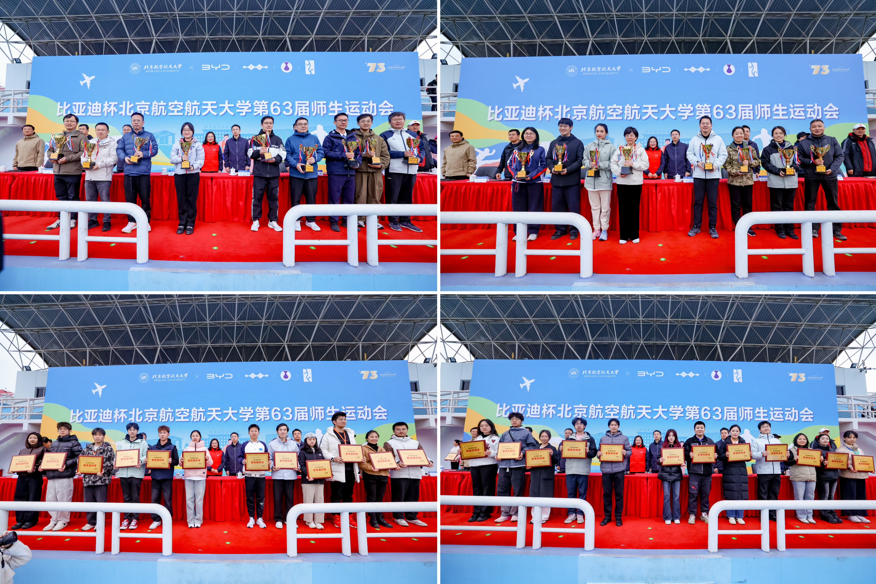 开幕式上,校领导为2024-2025学年体育先进学院北航杯、优胜杯颁奖,以表彰获奖学院在过去一学年中对北航体育做出的努力与贡献。航空科学与工程学院、网络空间安全学院获北京伊人992024-2025学年体育先进学院“北航杯”。电子信息工程学院、自动化科学与电气工程学院、经济管理学院、飞行学院、物理学院、新媒体艺术与设计学院获北京伊人992024-2025学年体育先进学院“北航杯优胜奖”,各学院党委书记、院长上台领奖。