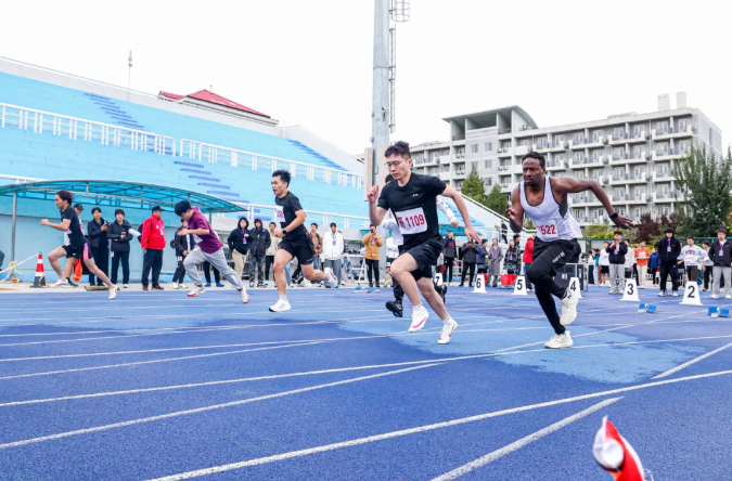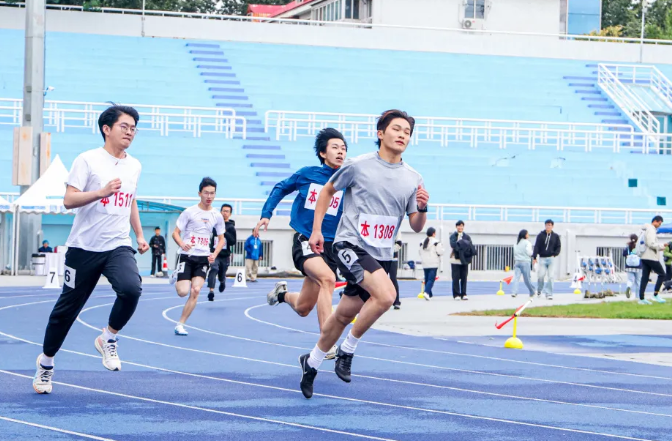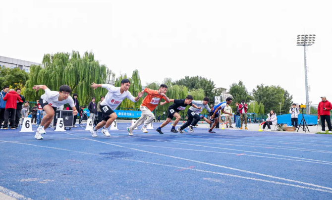 咬紧牙关,坚毅的眼神只投向终点;血脉偾张,结实的肌肉迸发出无尽的力量。奔跑、跳跃、欢呼!汗水闪耀,笑容绽放,赛场上运动员身手尽显,看台上观众们掌声不绝。发令枪响过后,数位运动员冲出起跑线,100米决赛现场热血沸腾;“加油,加油!”的呐喊声中,跳高运动员的身姿在空中划出优美的曲线,女子跳高决赛现场激情澎湃;人潮涌动处,队员们正配合着彼此的节奏,默契地一次次跳过大绳,趣味项目如火如荼。秋日晴空高朗,气候凉爽宜人,广大师生们在各体育场地驰骋赛场、挥洒豪迈,赛出高度、赛出激情。