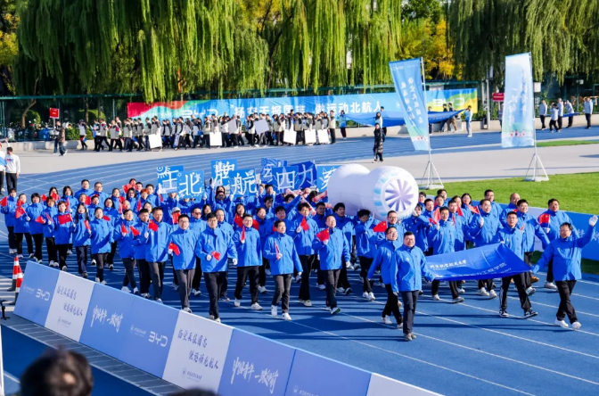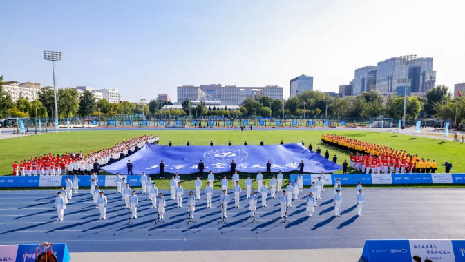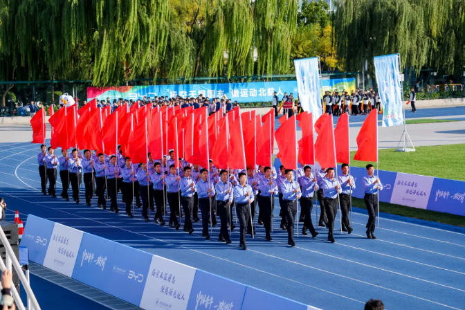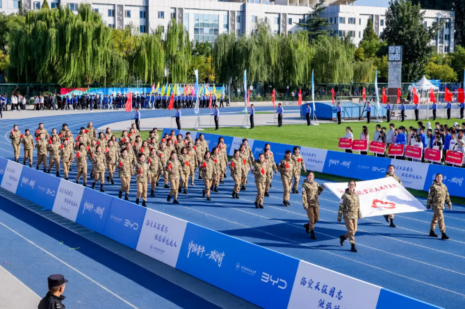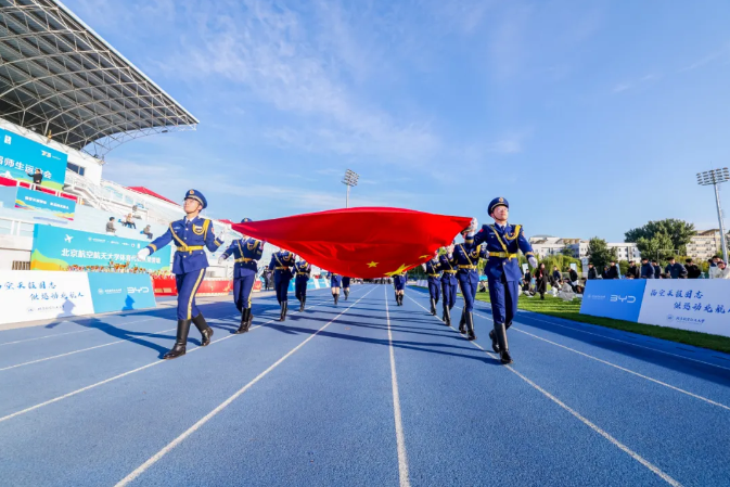 10月18日上午8点30分,伴随着激昂的乐声,运动会燃动开幕。由国旗、校旗为前导队,由各学院党委书记和院长、机关部处和服务支撑机构负责人带队的近3000名师生组成的44个方阵,整装待发、气势昂扬,迈入赛场,将北航精神凝聚在前行的每一步。英姿飒爽、神采飞扬,师生携手的整齐方阵,彰显立德树人的使命担当;步履铿锵的坚定前行,展现薪火相传的精神力量。各具特色的整齐着装彰显团结进取的部门风采,精彩纷呈的方阵表演展现朝气蓬勃的青春风貌,共同行进的机器狗和无人机尽显前沿创新的科研风采。