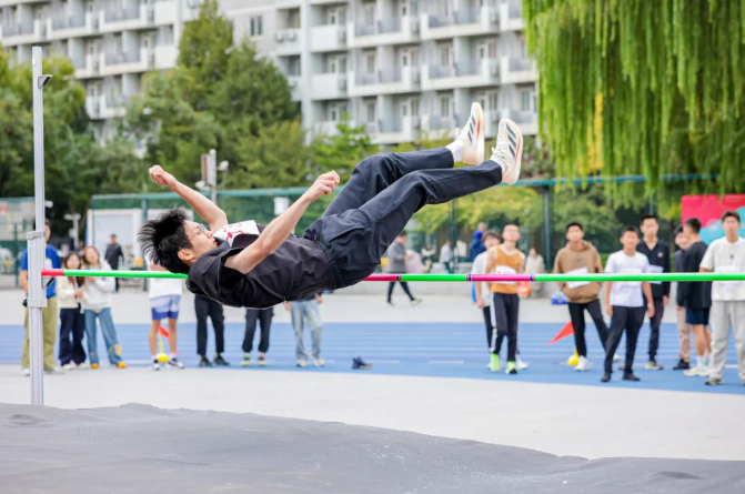 本届运动会竞赛单元项目丰富,兼具趣味性与竞技性。设有短跑、中长跑、跳远、跳高等传统田径项目,引体向上、立定跳远等体测项目,药球、实心球等全民健身项目。师生共同参与的“拔河”“跳长绳”等集体项目,星火相传、巧射天穹等趣味项目广受欢迎。