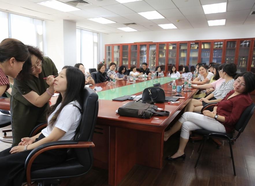 活动的开始,郎荣玲为大家上了一堂精彩的化妆课。郎荣玲结合女教师的工作生活实际,分享了日常的护肤经验;还通过互动的方式,亲自为在场的几位女老师化妆。活动现场气氛热烈,在场老师纷纷表示,作为女教师,不仅教学科研工作要做好,在日常生活中也要做一个仪表堂堂、气质不凡的新时代女性。一个人的修饰打扮不仅代表了个人仪表风度,也是一种尊重自己、尊重他人的礼仪表现。