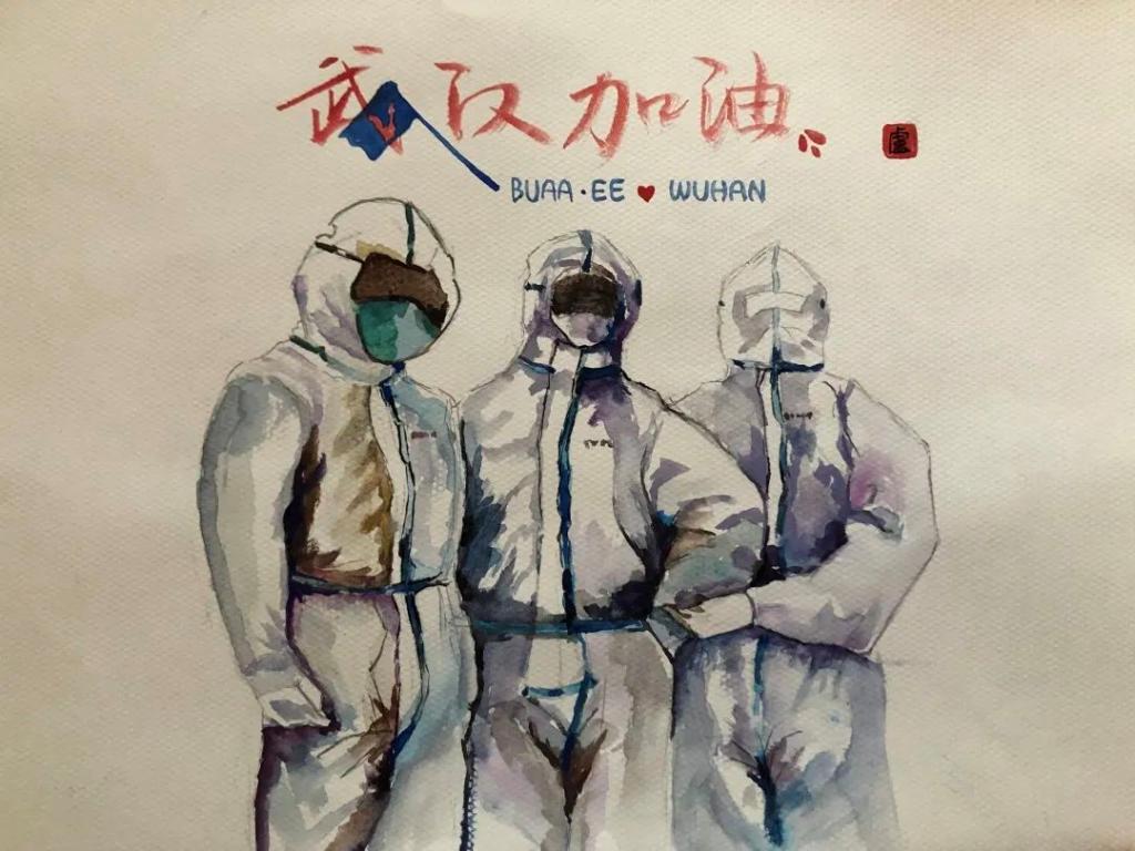 在防疫工作之余,卢小祝不忘关注同学们的业余生活,疫情期间已经协助组织、参加了电子学院多场线上活动,将抗击疫情的一幕幕感人场面凝聚于笔端,用诗词、美术等形式,解读政策文件、宣传防护知识、讴歌抗疫勇士,致敬奋战在一线的各行各业的人员,并以此激励大家坚定信心、团结一致、众志成城,在抗击疫情的战斗中取得最后的胜利。
