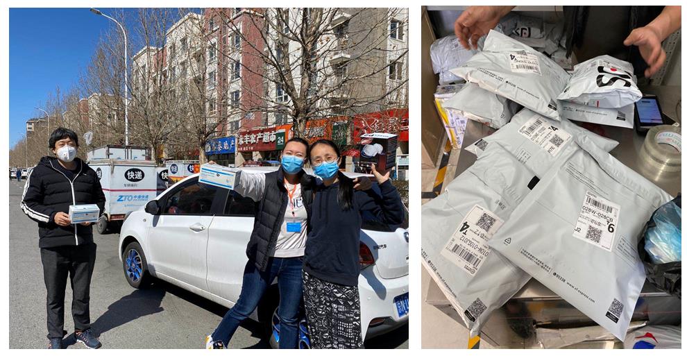 值班老师为学院教职工送、寄口罩