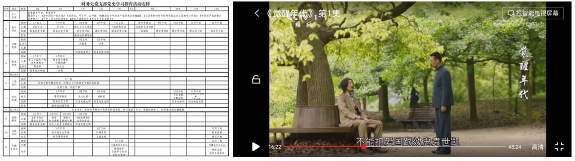 多角度主题研学。支部确定由处级领导班子、支部支委、支部小组长组成财务处党支部理论学习组,规划安排党史学习教育各阶段活动安排。支部理论学习组确定每月开展党史主题学习研讨会,首次集中学习主题为“新民主主义革命的新青年”,重点学习陈独秀、李大钊、毛泽东、鲁迅等一批“五四运动”前后涌现的马克思主义观历史人物事迹。支部鼓励党员同志充分利用“学习强国”平台资源,研习“党史学习”“党史学习教育”“高校党史学习教育”等多个强国专题,观看《觉醒年代》等红色影视作品,深入并客观地了解那段革命年代的红色革命征程。