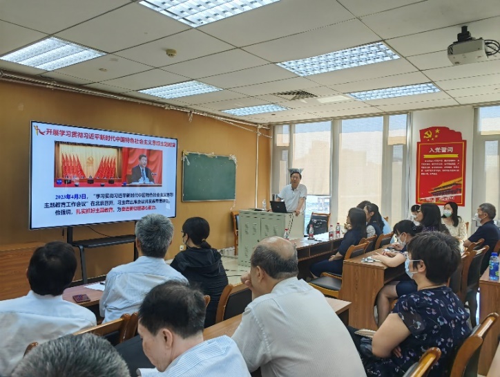 自动化科学与电气工程学院院长吕金虎以《踔厉奋发,以高质量发展新成效检验主题教育成果》为主题,带领大家进一步深刻认识开展主题教育的重要意义,指出要全面把握主题教育的目标要求,全面落实主题教育的重点措施,并对习近平在中共中央政治局第五次集体学习时的重要讲话精神进行了宣贯。他着重汇报了主题教育“研究生全过程质量保障”专题调研和推进进度,就超长年限博士生、研究生课程质量、导学关系、硕博论文评审等有关问题以及学院采取的有关整改措施进行了详细的阐述,最后强调要以习近平新时代中国特色社会主义思想凝心铸魂,以推动高质量发展的新成效检验主题教育成果,以空天报国、立德树人的实际行动交出北航人的答卷。