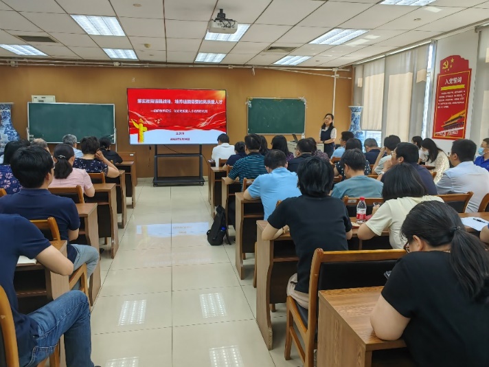 自动化科学与电气工程学院党委书记王少萍以《落实教育强国战略,培养祖国需要的高质量人才》为主题,详细阐述了习近平总书记关于教育强国的重要指示精神和教育对于强国的重要作用。汇报了学院结合主题教育,围绕“破解教学短板,优化高质量人才培养新机制”专题的调查研究情况,着重说明了本科教学竞课上岗、构建本博一体化人才培养方案和课程体系、打造国内一流电类课程教学实验中心等一系列创新举措。强调通过主题教育学习,聚焦学院本科生培养存在的问题,加大整改力度,破解教学短板,优化高质量人才培养新机制的全过程。她要求全院教师要踔厉奋发,勇毅前行,为教育强国、为培养出国家需要的红色高质量接班人努力奋斗。