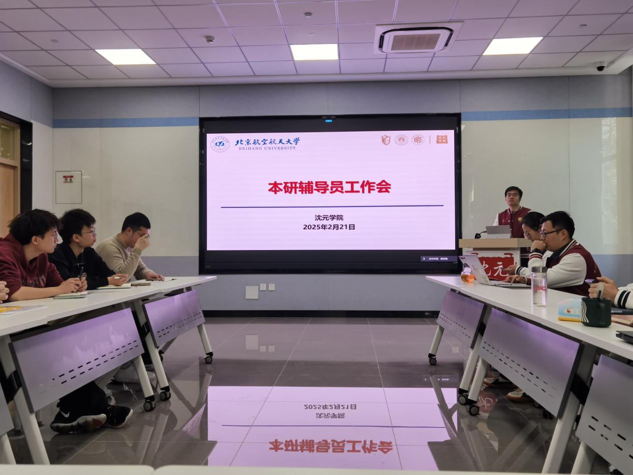 北航新闻网2月26日电(通讯员 沈梓航/文 张源博 陈加煜/摄影)2月21日上午,沈元学院于主楼502会议室召开新学期第一次本研辅导员大会,传达学校重要工作精神,交流新学期工作计划。
