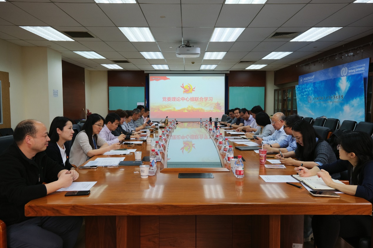 北航新闻网4月25日电(通讯员 孙振佳 续凌 刘宁 崔钰莹)4月22日下午,国际前沿交叉科学研究院党委、计算机学院党委、软件学院党委、人工智能研究院党委联合开展理论学习中心组联学共学,深入学习领会习近平总书记关于加强党的作风建设的重要论述及中央八项规定及其实施细则精神,交流深入贯彻中央八项规定精神学习教育的典型做法,深入学习习近平总书记关于人工智能的重要论述,进一步凝聚共识合力,探讨加快发展人工智能的思路举措。各单位党委班子成员出席联合学习会议,会议由计算机学院院长王蕴红主持。