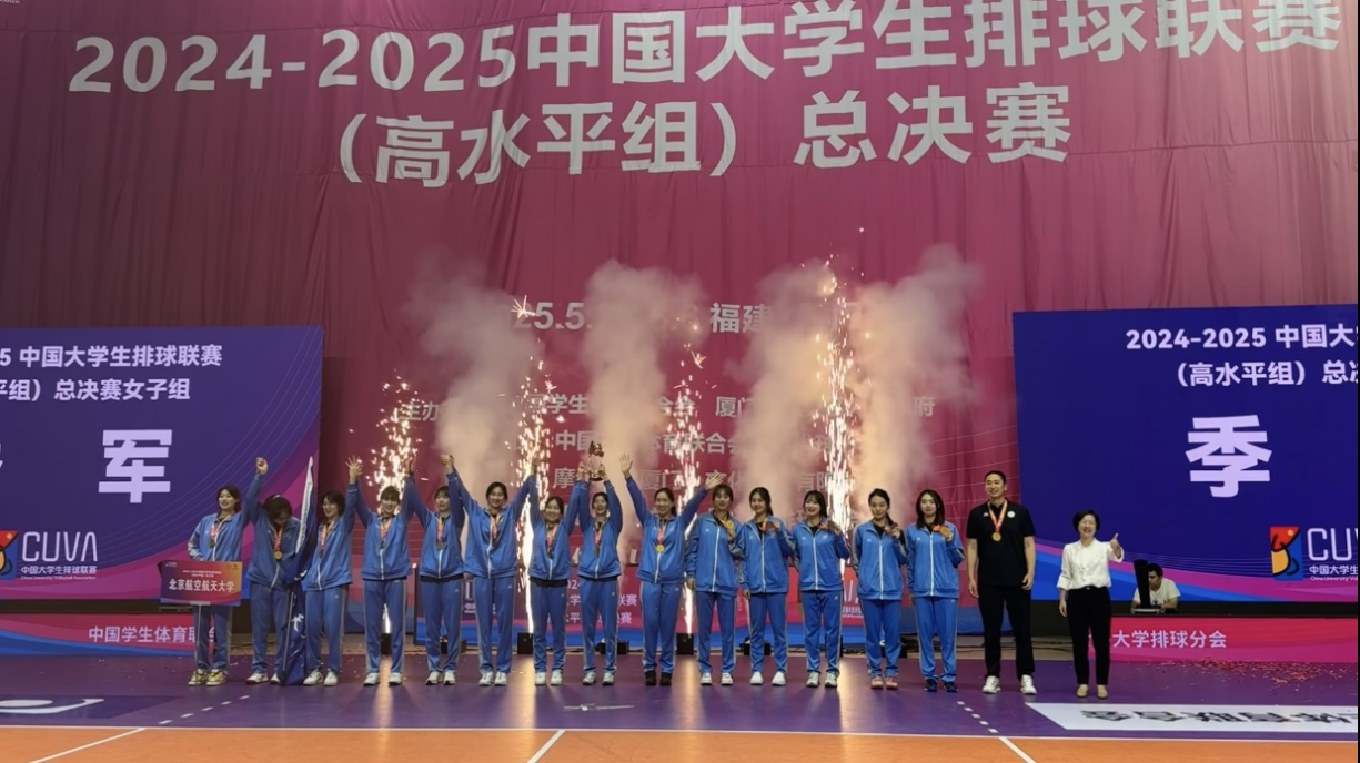 北航新闻网6月12日电(通讯员 谭程)5月26日-6月6日,2024-2025中国大学生排球联赛(高水平组)总决赛在厦门理工学院举办,体育部王晨老师带领高水平女排参赛。队员们凭借精湛的球技、顽强的斗志和出色的团队协作,一路过关斩将,最终夺得季军。
