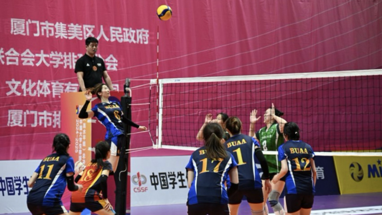 半决赛中,北航女排遭遇了前两届冠军南京师范大学,双方比分紧咬,北航女排全力以赴,最终还是以2:3遗憾落败。季军争夺战中,北航女排迎战老对手北京体育大学女排,队员们配合默契,敢打敢拼,最终以3:2的比分战胜对手,夺得2024-2025中国大学生排球联赛(高水平组)季军。