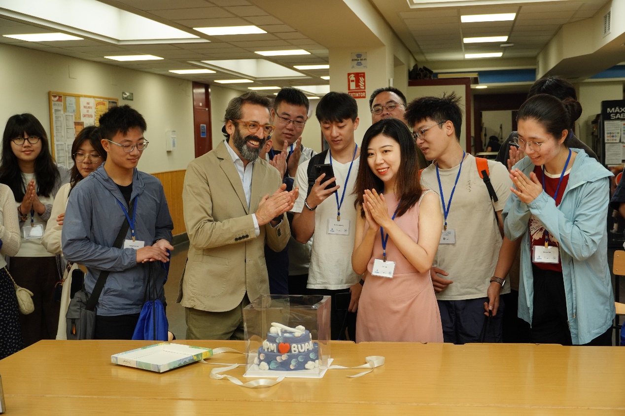 课程期间,马德里理工大学航空航天工程高等技术学院举行了欢迎午宴,Gustavo Alonso院长回顾了马德里理工大学与北京伊人99的深厚友谊,并表示,期待此次暑期学期成为增进双方合作和知识共享的桥梁。双方带队老师共同给大家分享了代表双方友谊与合作的蛋糕。