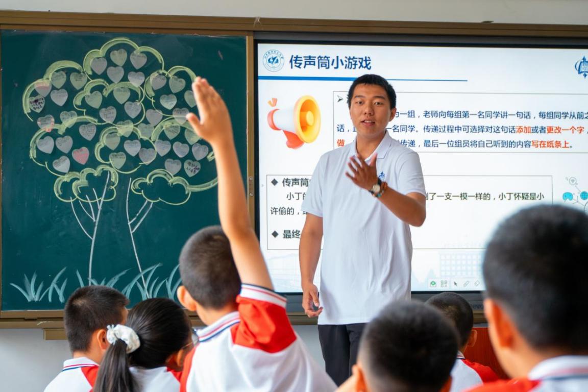 破冰班会上的欢笑、上下学路上的叮咛、课堂外的耐心指导……短短一周,队员们既是授课老师,更是孩子们身边的“护芽人”。他们回答孩子们关于大学的种种好奇,放学时陪伴孩子们等待家长的到来,他们用言行传递“国家安全就在身边”的理念,又用微笑与掌声予上台的孩子以鼓励……而相应的,辅导员和孩子们的双向奔赴,也令队员们自我收获了独特的成长。实践队队员孙萁悦在课后对孩子们说:“我愿用真心守护你们的奇思妙想,你们也用童真温暖了我的第一次课堂。”
