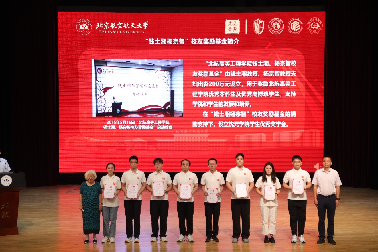 全体师生共同观看了沈元学院学生代表发言视频,倾听在校生代表和新生代表“强国有我”的铮铮誓言。随后,“钱士湘杨宗智”校友奖励基金创设人杨宗智与教务部部长钱政为沈元学院学生优秀奖学金获奖代表颁奖。杨宗智结合自身求学与奋斗经历,勉励新生不仅要珍惜时光、打牢基础、锻炼身体、拓展视野,更要心怀家国、勇于探索,用知识和行动书写青春华章,为国家发展贡献青春力量。