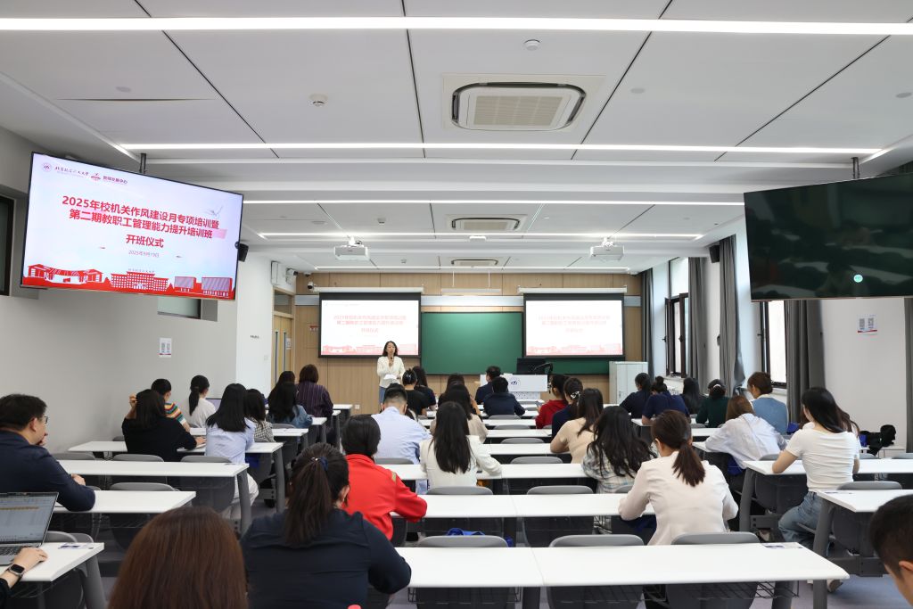 北航新闻网9月25日电(通讯员 王孚尹/文 王旭 龚德艳/摄影)9月19日上午,由机关党委、教师发展中心联合组织的2025年校机关作风建设月专项培训暨第二期教职工管理能力提升培训班开班仪式在学院路校区老主楼主401教室举行。党政办公室、教师发展中心等单位负责人,以及京杭两地近60名教职工以线上线下相结合方式参加。仪式由教师发展中心主任李红捷主持。
