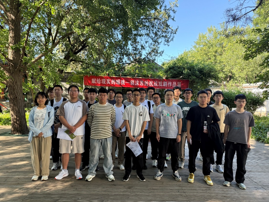 展览从郭沫若故居外的“妈妈树”开始,在讲解员的引导下,依次走过了这位文化巨匠生平最后15年的居所,用一件件物品,一段段史实为同学们揭开了郭沫若毅然回国,不屈抗争的一生。参观以郭沫若的抗战戏剧作品展“献给现实的蟠桃”结束,这一作品展以郭沫若7部“借古鉴今”戏剧创作为核心,生动诠释了郭沫若开展新文化运动,并投笔从戎参与革命的信念与决心。郭沫若这七部戏剧中让历史人物为时代发声的艺术感染力,不仅激发了在当时民族危亡关键时刻人民对于抗战的热情,也深深感召着在如今和平年代,铭记先辈事迹,要用青春力量建设祖国,维护和平的同学们。