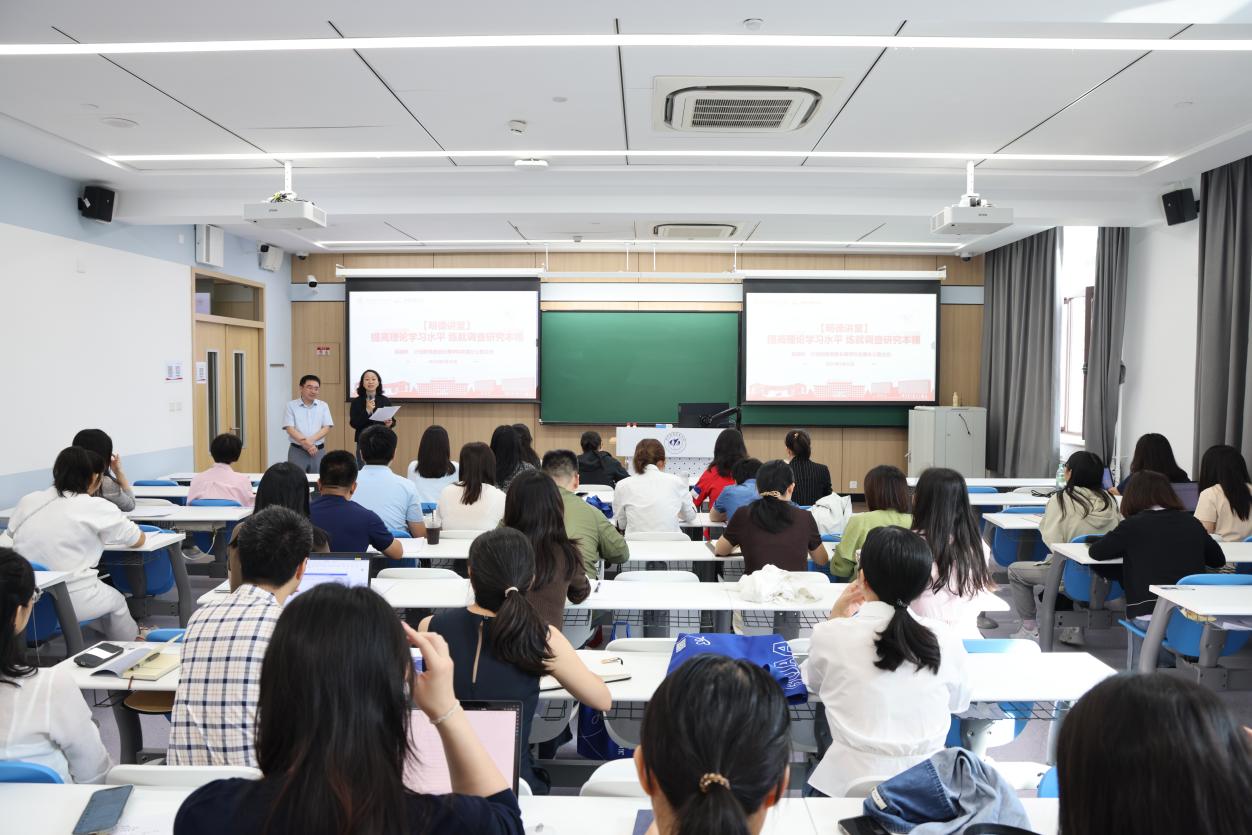 吴瑞林作《提高理论学习水平 练就调查研究本领》专题讲座。首先,他深入解读了习近平总书记关于教育强国、新质生产力与“双一流”建设的重要论述。并指出学校以理论指引实践,通过科学设定标准、优化学科结构、构建空天信融合的一流学科生态体系,推动数智赋能教育,加强基础与交叉学科建设,服务新质生产力发展。随后,他系统阐述了文献调研、访谈、问卷等研究方法。结合实际案例,提出做好调查研究的四个关键要素:一要“实”,研究问题要立足实际、调查过程要深入实地、建议要追求实效;二要“深”,要用心洞察问题背后的深层逻辑;三要“全”,要全方位、多角度了解问题;四要处理好调查、研究两个环节。最后,他希望老师们做到理论学习与调研实践相结合,将提升调查研究能力内化为一种工作态度和作风,持续练就这项必备本领,为学校高质量发展提供坚实支撑。