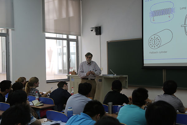 Coey教授来我校讲授《磁学与磁性材料》课程是材料学院第十一届研究生学术论坛系列活动之一。针对参加课程的中国研究生的英语水平、思维方式、基础知识等基本情况,Coey教授做了认真调研,并对授课内容和授课方法都作了精心准备。