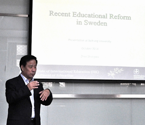 北航新闻网10月30日电(通讯员 黄瑶) 应我校人文学院的邀请,赵尚武教授于10月28日到我校人文学院为广大师生做了“瑞典教育改革现状”的讲座,并于当日下午就“高校招生制度改革:公平和质量之间的困境 ”与人文社会科学学院研究生开展了一场workshop。