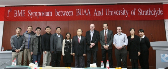 北航新闻网11月4日电(通讯员 范睿 余春红/文 李文婷/摄影) 11月3日,由我校国际植介入医疗器械转化研究中心、生物与医学工程学院与Strathclyde大学生物医学工程系共同举办的“第一届北航-斯特拉斯克莱德大学双边研讨会”在我校召开。来自英国斯特拉斯克莱德大学的4位教授及北航生物力学、力生物学、康复、医疗器械等方向的教授、青年教师和研究生参加了此次双边研讨会。