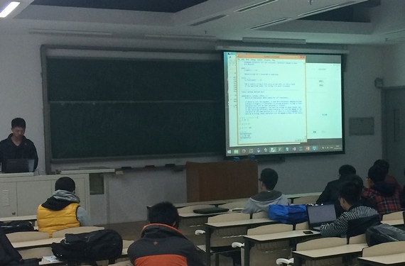 北航新闻网11月17日电(通讯员 王婧仪) 11月15日下午,计算机学院面向沙河校区全体本科生的“程序设计第二课堂”正式开课。来自计算机学院1306大班的王鹿鸣、何涛、郝泽锟三名同学,为前来听课的学生分别讲授了有关C语言、Python和网路技术的相关课程。