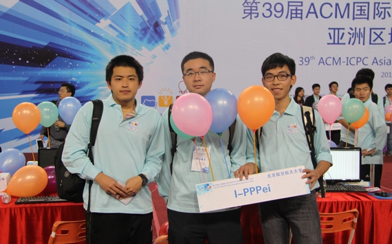 北航新闻网11月24日电(通讯员 杜鹏宇) 11月23日,在第39届ACM国际大学生程序设计竞赛亚洲区域赛广州站中,由我校ACM集训队队员黎健成、周帅和刘毅博组成的“HentaiSpirit”队发挥出色,获得一枚银牌;队员林泉沛、李沛伦和张沛组成的“I-PPPei”队获得一枚铜牌。本次广州站共有来自100多所知名高校的170支队伍参加了比赛。