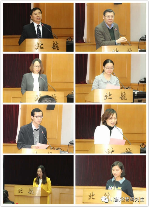 材料学院本科生杨晗同学和经管学院研究生卢竹同学的真挚感言,深切表达了全体获奖同学对中航工业北京航空材料研究院的感谢,和对自身成长的认知、领悟和鞭策。最后,航材院党委副书记王志刚先生发言,他总结了一代代北航经管学院、材料学院的高材生在航材院的跨越式发展中做出的突出贡献,更期待通过该奖学金的设立,能激励更多北航的材料、管理人才,加入到发展航材院,回报大北航,投身祖国航空航天事业的队伍中来。