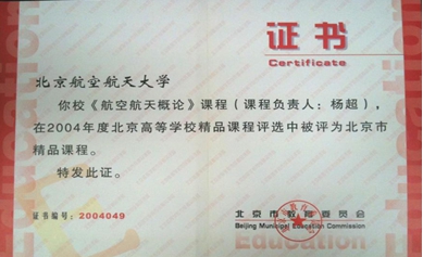 “航空航天概论”北京市精品课证书