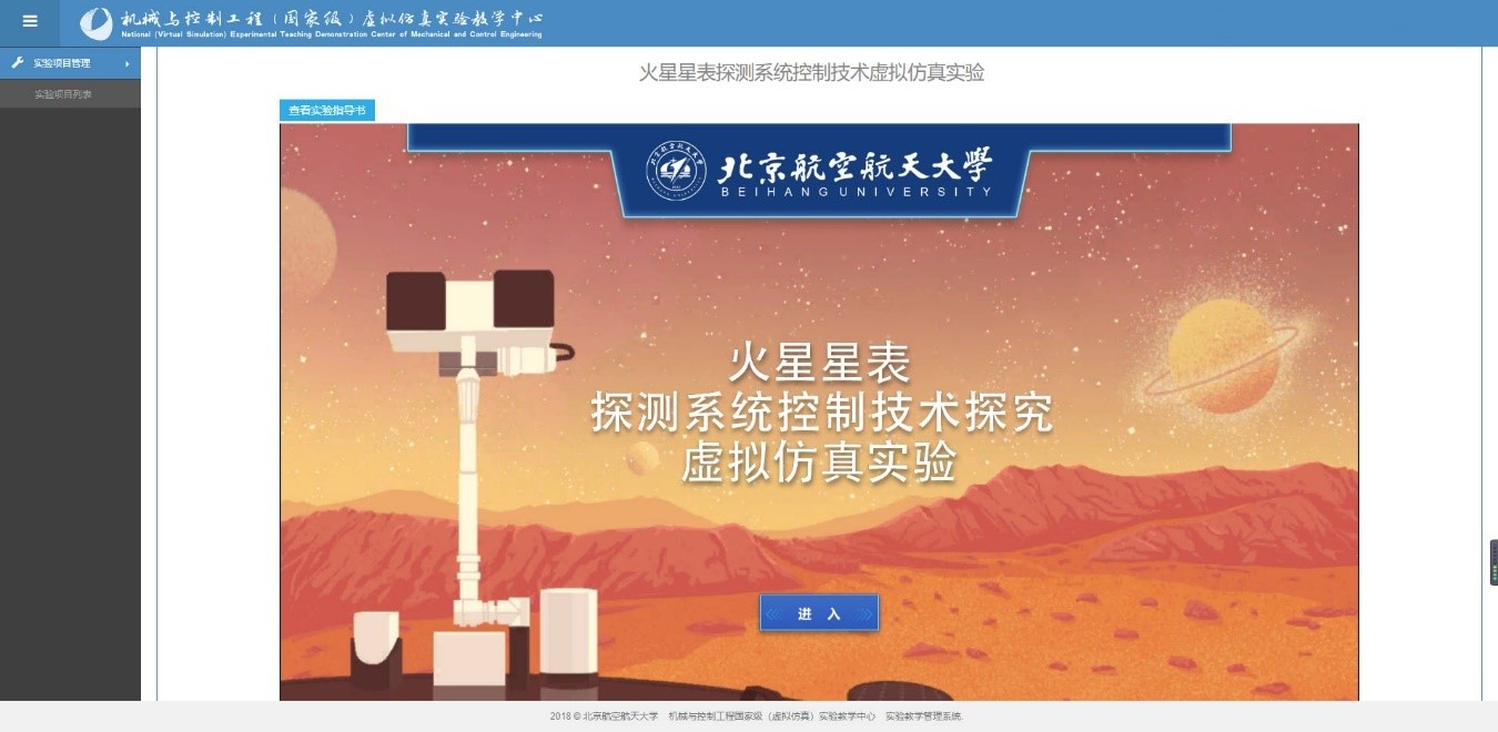 “火星星表探测系统控制技术探究”是面向新时代自动化专业高质量人才培养目标,以我国当前航空航天领域前瞻性的火星探测任务为背景的虚拟仿真实验。本项目来源于国家自然科学基金和某型月球车工程项目的科研成果,依托国家级虚拟仿真实验教学中心资源,采用虚拟现实、人机交互、信息处理等技术,构建了“虚拟实体协同、课内课外联动”的闭环教学方法及学习行为和实验效果的综合评价机制。支撑《自动控制原理》等课程的实验教学。