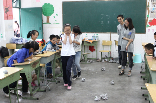 志愿者为孩子开展团队建设活动
