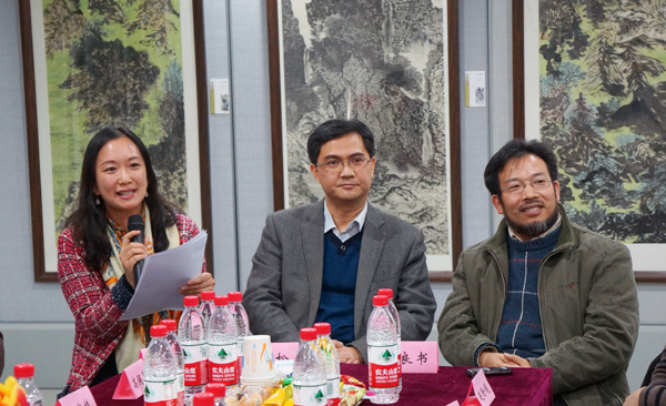 策展人陈兰(左)、参展画家蔡劲松(中)、马良书(右)