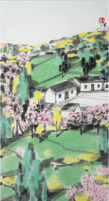 马良书 半坡田陇半坡花50x90cm 宣纸彩墨