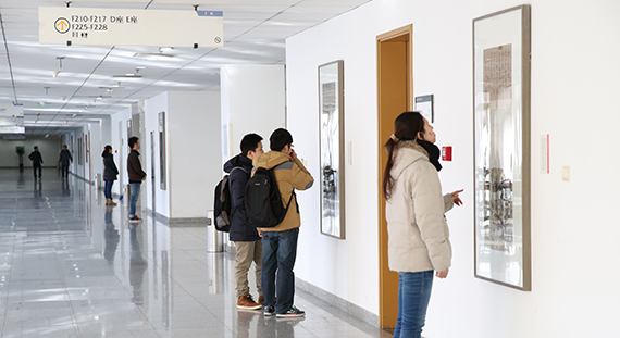 据记者了解,“中国历代传世经典绘画展廊”项目,是北航“校园人文艺术氛围提升计划(一期)”的重要内容。不久前,该项目组已在新主楼二层环廊里添置了40余套公共桌椅、近200个座位供同学和老师进行交流、学习或举办沙龙活动,为师生提供了一处自由、开放、舒适的互动交流公共空间。