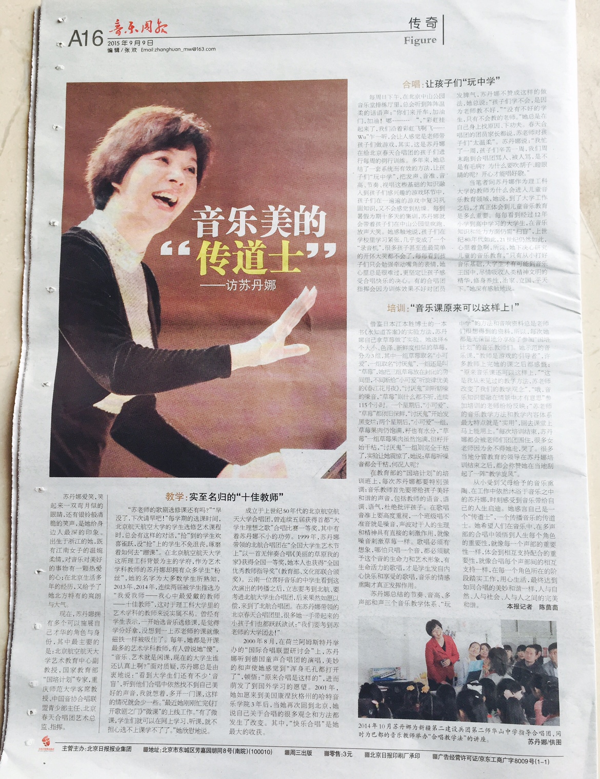 当笔者问苏丹娜作为理工科大学的教师为什么会进入儿童音乐教育领域,她说,到了大学工作之后,才真正体会到儿童音乐教育是多么重要。每每看到经过12年小学到高中学习的大学生,在音乐知识和能力方面仍需“扫盲”,上世纪80年代如此,21世纪仍然如此,心里着急啊,所以,她下决心研究儿童的音乐教育,“只有从小打好音乐基础,大学生才有可能到音乐王国中,尽情吸收人类精神文明的精华,修身养性,治家、立国、平天下。”她深有感触地说。