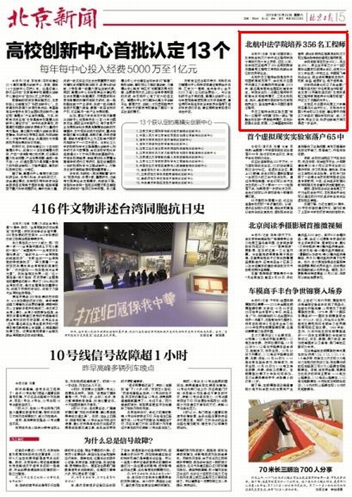 《北京日报》2015年10月24日(记者 任敏)报道: