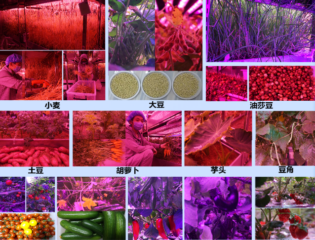 为了解决吃的问题,实验人员在“月宫”植物舱里种植粮食、蔬菜和水果。太空舱里呈现的红蓝色光源是为光合作用特别设定的光谱频段,因为植物对红蓝光的需求最为旺盛,在这样的光照条件下,作物能更加健康迅速地生长。