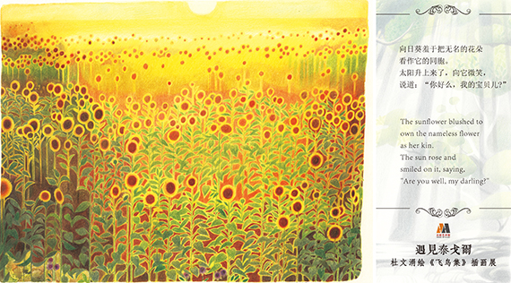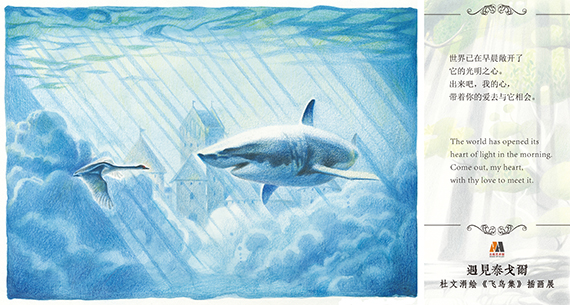 编者按:3月18日,由北航文化与艺术传播研究院、中国青年出版社联合主办的“遇见泰戈尔——杜文涓绘《飞鸟集》插画展”,在北航艺术馆展览大厅正式开展。本次展览系在中国青年出版社2015年3月刚刚隆重推出的彩绘精装、汉英对照新版泰戈尔《飞鸟集》的基础上,以诗歌与绘画艺术“联袂”展览的方式,传播世界经典文学名著的探索和尝试。展览共展出了青年艺术家杜文涓为《飞鸟集》专门创作的插画作品50幅,唯美不甜腻、从容不柔弱,自然澄澈、温暖流露,云淡风轻却恰到好处地勾勒、演绎出泰戈尔诗作的清新意蕴与深邃哲思。北航新闻网现分享“遇见泰戈尔——杜文涓绘《飞鸟集》插画展”作品选,以便各位近距离、多角度、全方面地感受经典文学及艺术作品带来的审美感受和心灵感应。
