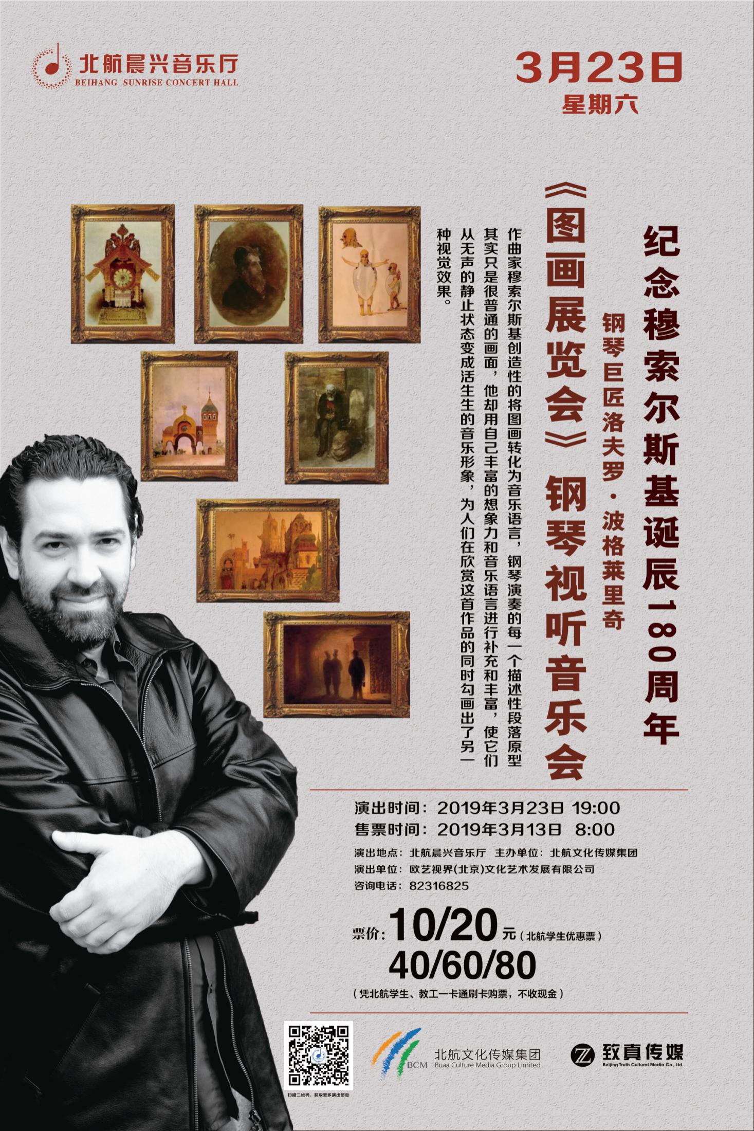 2019年正值穆捷斯特·彼得罗维奇·穆索尔斯基诞辰180周年之际,其最为著名的作品当属钢琴套曲《图画展览会》。1873年,穆索尔斯基的好友建筑师兼画家维克多·哈尔德曼因急病去世,年仅39岁,穆索尔斯基为了纪念这位与其交往达四年之久的密友,参观了由俄罗斯著名评论家斯塔索夫在圣彼得堡美术学校为哈尔德曼所举行的绘画遗作展览会,展览会上展出了哈尔德曼生前所创作的一系列水彩画作品,画家的遗作使穆索尔斯基非常激动,他深深的被亡友的作品所打动,于是他选择了其中的十幅作品用于创作,写成了《图画展览会》这部构思新颖、形象鲜明、语言独特的作品,以表达对亡友的哀思和敬意。