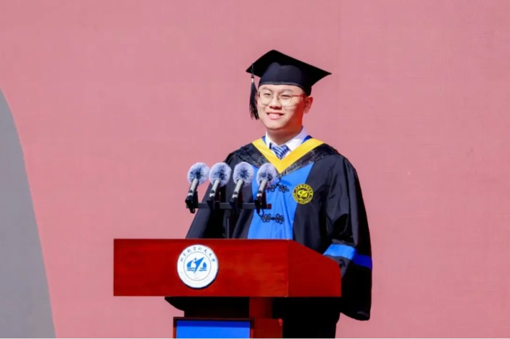 寇竞作为2024届本科生代表在毕业典礼上发言