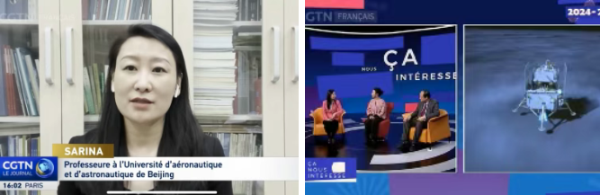2022年受CGTN法语频道采访育人成效,带领学生共同用法语接受采访,讲述中国的航空航天进步