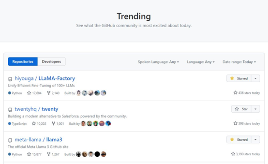 LLaMA-Factory登顶Github热门项目榜单全球第一